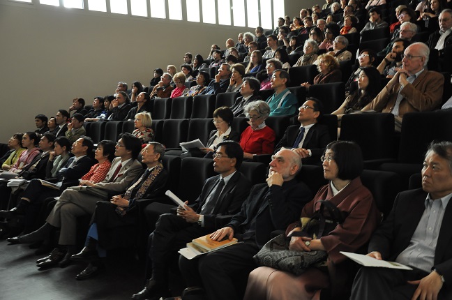 4日は、当財団理事長が『ジャンヌダルクと蓮如』の仏語訳出版記念としてテーマ「東西の偉大なる精神―ジャンヌダルクと蓮如―」で講演。約200人の学生、学識者等によって満席となった会場で、当財団理事長はほぼ同時代に生きたジャンヌと上人の強固な信心によって育まれた精神と文化、それによって拓かれた新時代と両国民に与えた思想的な意義等を紹介した。