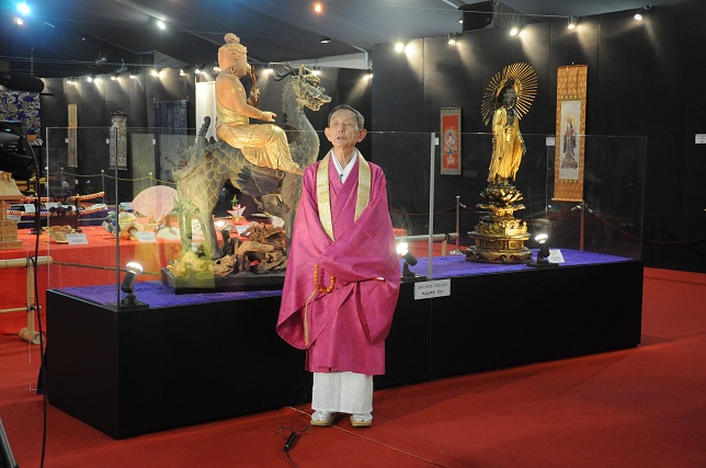 東本願寺東山浄苑では7月13日から2週間、スリランカ・コロンボで文化展「日本人の智恵」展を、4月のフランスの展示に引き続いて開催しました。 日本国外務省から日本スリランカ国交正常化60周年の中心事業を要請された当浄苑が京都市と共催し、スリランカ政府、京都国立博物館、国際交流基金等の協力を得て開いたものです。 フランスと同じく、佛壇や西陣織、金箔等、京都の伝統工芸とそれに端を発する先進技術の作品約60点を展示。聖徳太子の「和の精神」や神仏習合の信仰を基底にした日本人の思想や文化を「日本人の智恵」と名付け、作品や新作DVD8種等から紹介しました。 開展式には、日本大使、スリランカ大統領(代理)等が出席したほか、スリランカ史上初の大型文化展として連日、マスコミに報道され、約2万人が訪れました。